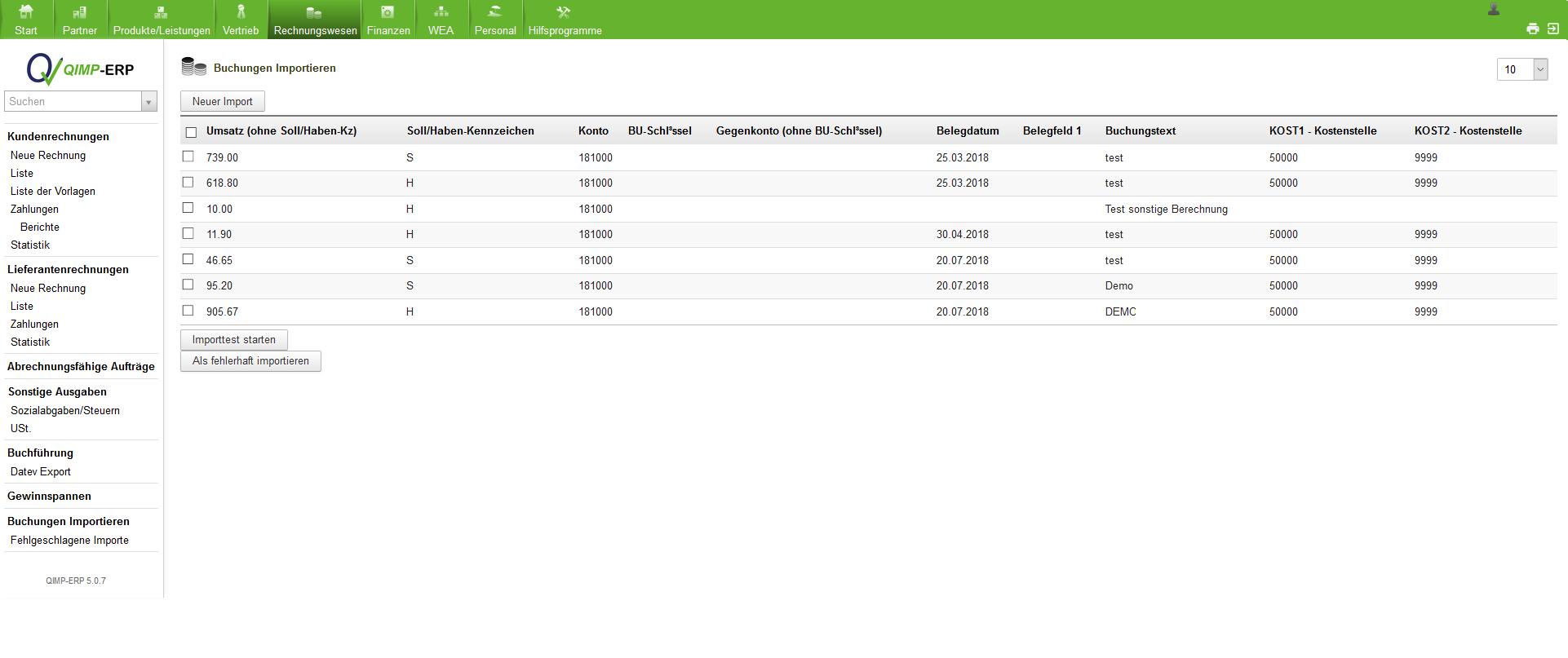 1. Um einen Import durchzuführen, öffnen Sie das Rechnungswesen. Dort finden Sie das Leftmenü:„Buchungen Importieren“