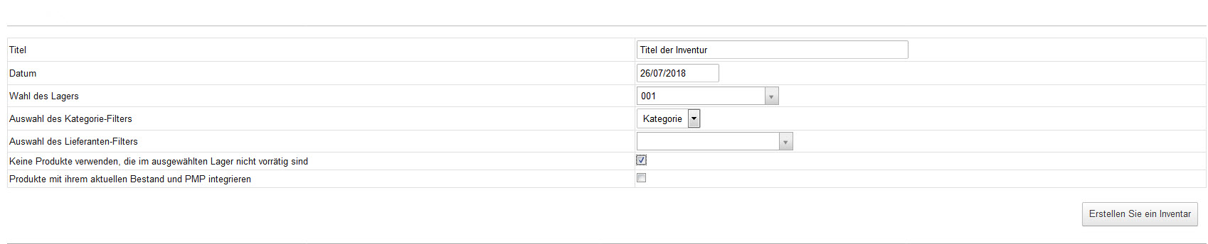 Als erstes müssen Sie die Kopfdaten zur Inventur eintragen: