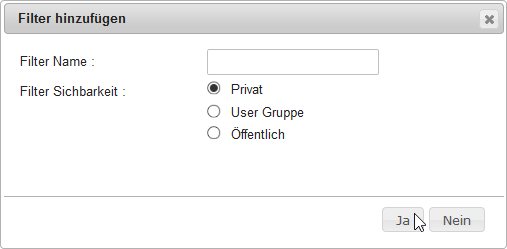 - User Gruppe ⇒ Alle User der gleichen Gruppen können den Filter benutzen