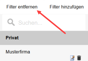 Um den aktuellen Filter zu Löschen/Entfernen öffnen Sie das Menü